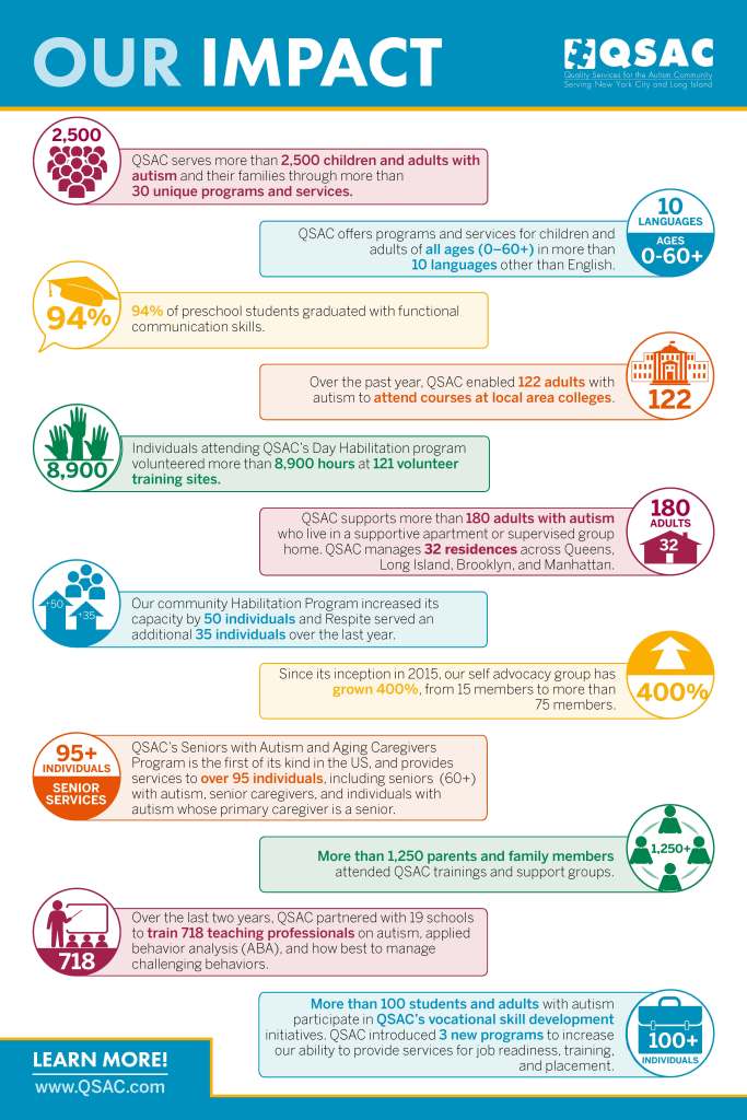 About: In 2019, QSAC wanted to refresh their impact statement flyer. I compiled a list of all of the impact statements, wrote the statements, and conceptualized and designed each accompanying icon as well as the overall design of the flyer.